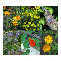 • Este kit de semillas orgánicas contiene: Clavel de limón (Tagetes tenuifolia), Caléndula (Calendula officinalis), Capuchina, mastuerzo(Tropaeolum majus), Borraja (Borago officinalis)