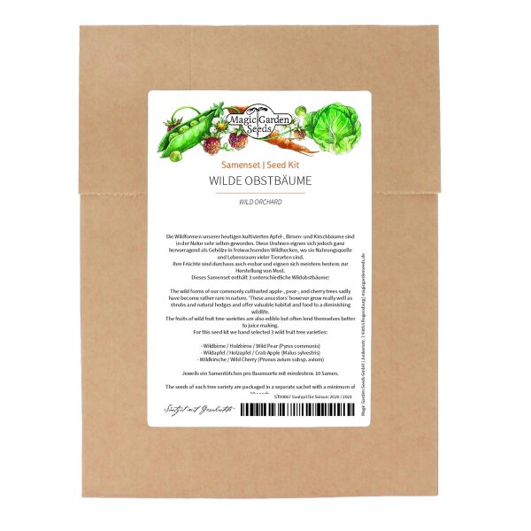 • Este set contiene 3 variedades de árboles frutales silvestres: Peral silvestre (Pyrus pyraster), Manzano silvestre (Malus sylvestris) y Cerezo silvestre (Prunus avium subsp. avium)